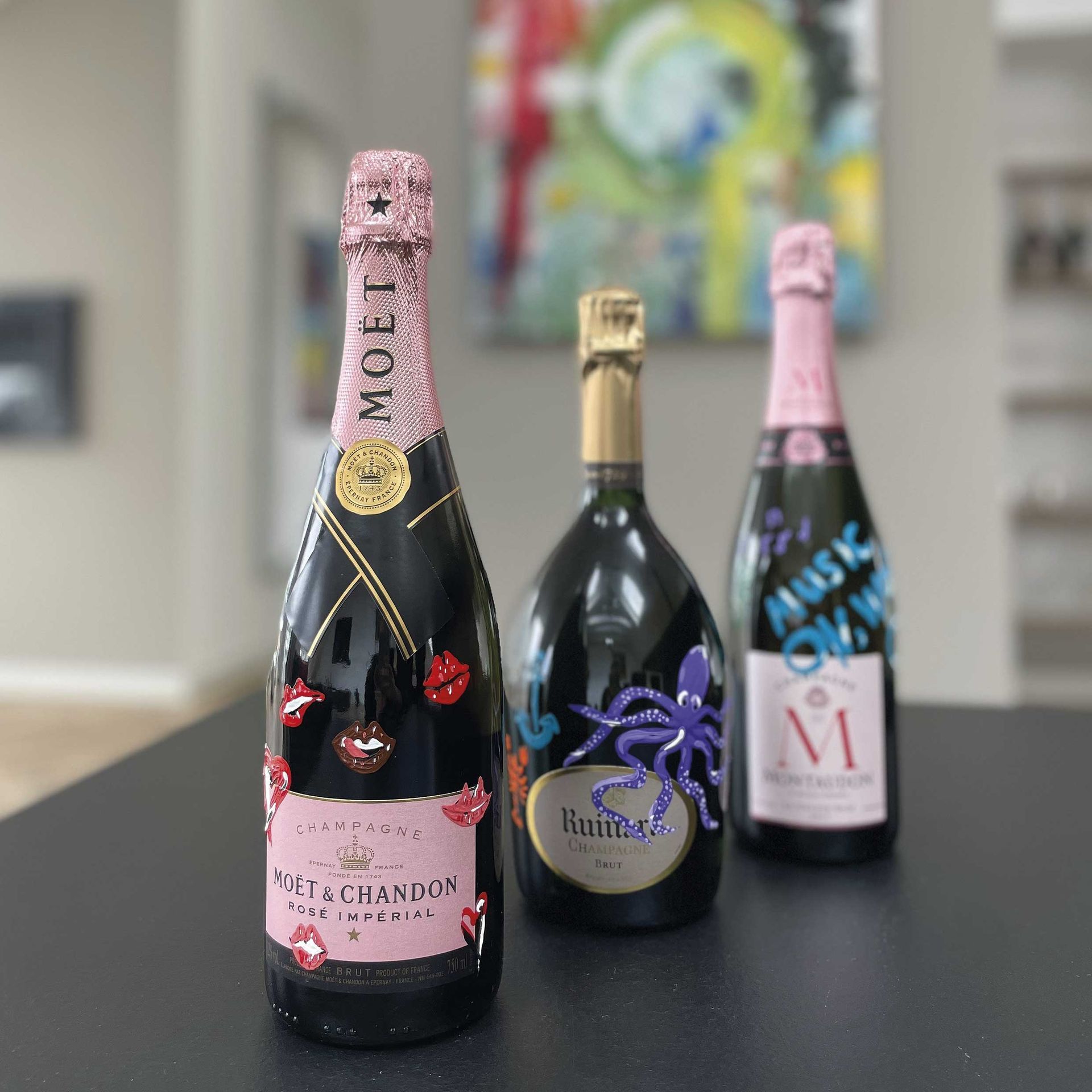 Whether celebrating a wedding, anniversary, birthday, or corporate event, our personalized champagne bottles add a touch of sophistication and personal significance. Elevate your special moments with a gift that truly stands out. Every bottle is a one-of-a-kind masterpiece, carefully crafted and individually painted to reflect your personal message or special design. Let your creativity shine – whether it's initials, a special date, or an artistic motif, our artist bring your vision to life.